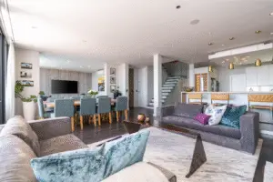 Step inside, and you’re immediately enveloped in the open, airy atmosphere of the expansive living areas. The carefully